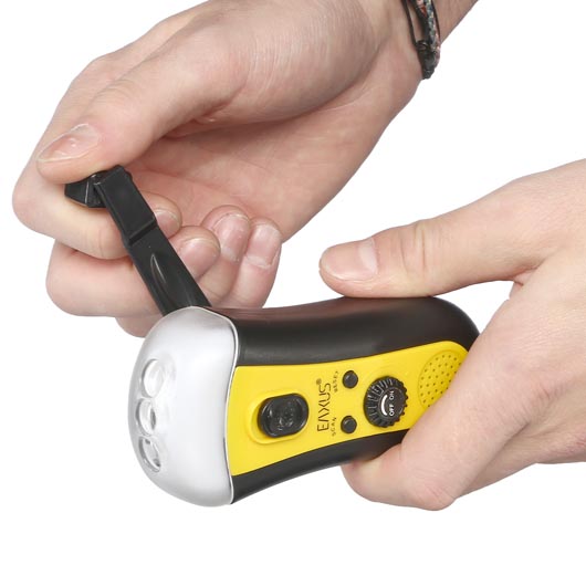 - 3-5 Min. Kurbeln ergibt ca. 15-20 Min. Licht oder 15 Min. Radio