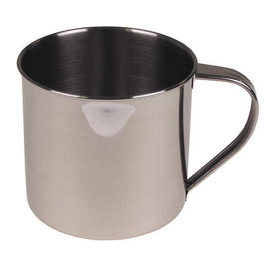 Einwandige Tasse aus poliertem Edelstahl mit einem Fassungsvermögen für 500ml Flüssigkeit. Ideal für Wanderer, Camper und viele Outdooraktivitäten.