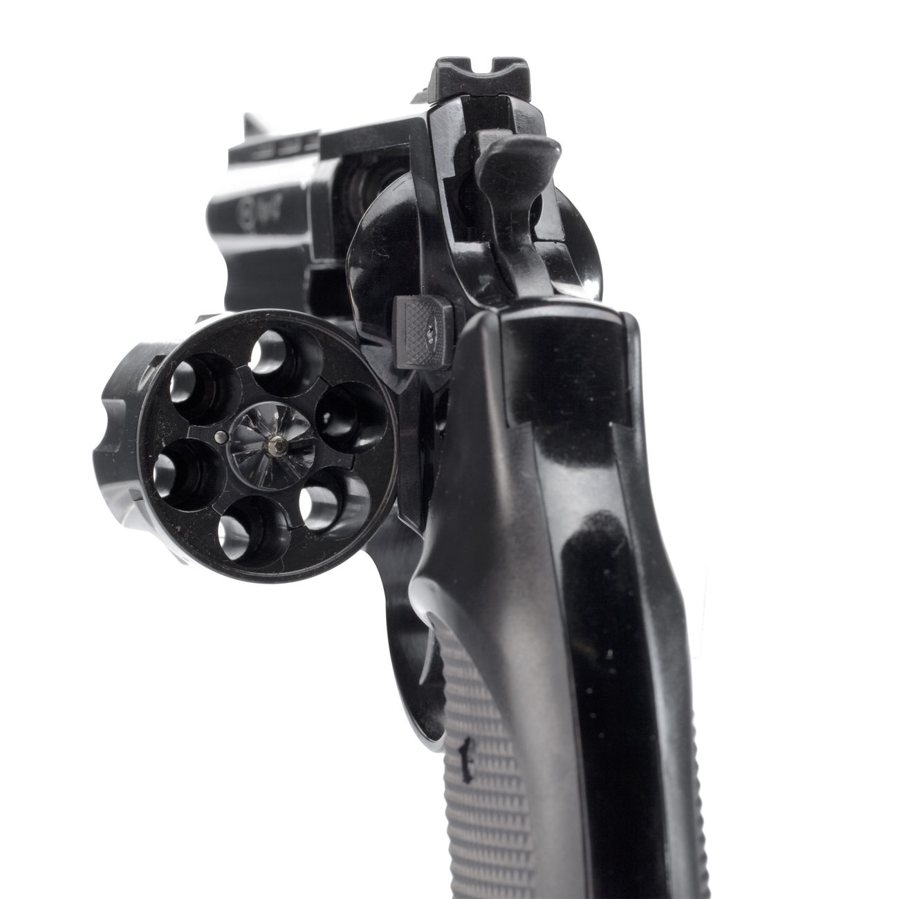 Der Ekol Viper 4,5 Zoll ist ein hochwertig verarbeiteter Schreckschuss Revolver. In seiner Stahltrommel findet sich Platz für 6 Patronen im Kaliber 9mm. Er verfügt über einen Single- und Double-Action Abzug. Das Griffstück besteht aus Metall, ummantelt von 2 schlagfesten ABS-Kunststoffschalen.