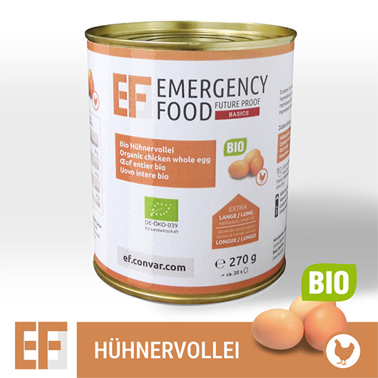 Emergency Food Basic Notration Bio Hühnervollei 270g Dose ergibt ca. 20 Eier