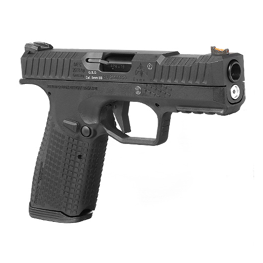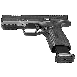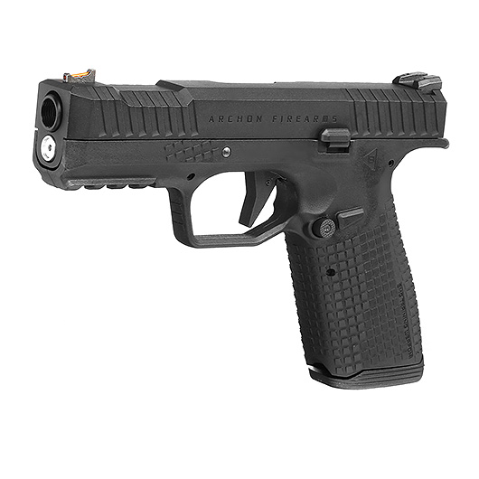 Durch die Lizenzierung ist die Pistole von EMG natürlich mit sämtlichen Archon Firearms Markings ausgestattet - exakt wie beim Original Vorbild. Vor allem der Metallschlitten, der im CNC-Herstellungsprozess gefertigt wurde, ist mit besonders geringen Toleranzen ausgestattet und macht die Type-B zur perfekten Replika. Die schönen seitlichen Ausfräsungen im vorderen und hinteren Bereich reduzieren unnötiges Gewicht und die kantige Formgebung sorgt für ein sehr aggressives und modernes Gesamtbild. Natürlich sind sämtliche Markings da wo sie hingehören und sauber eingegossen oder präzise eingefräst.
