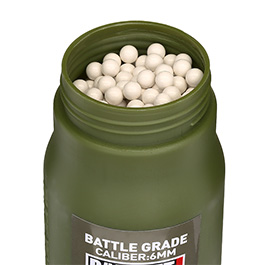 Im Innern befinden sich besonders hochwertige EMG 6mm BBs, die mit einer besonders glatten und gratfreien Oberflächenbeschaffenheit ausgestattet sind. Um diese positven Eigenschaften zu erhalten, werden die BBs einem mehrfachen Polierverfahren unterzogen. Auch die niedrige Außendurchmesserabweichung (max. +/- 0.01 mm) sorgt für eine sehr gute Flugbahn der 6mm BBs. Als Durchschnittsmaß wird vom Hersteller ein Durchmesser von 5.95 mm angegeben. Die genannten positiven Eigenschaften der EMG / Barrett BB Serie tragen dazu bei, dass die Kugeln über sehr gute Feeding-Eigenschaften verfügen und deshalb auch in allen Magazinen ohne Probleme angewandt werden können.