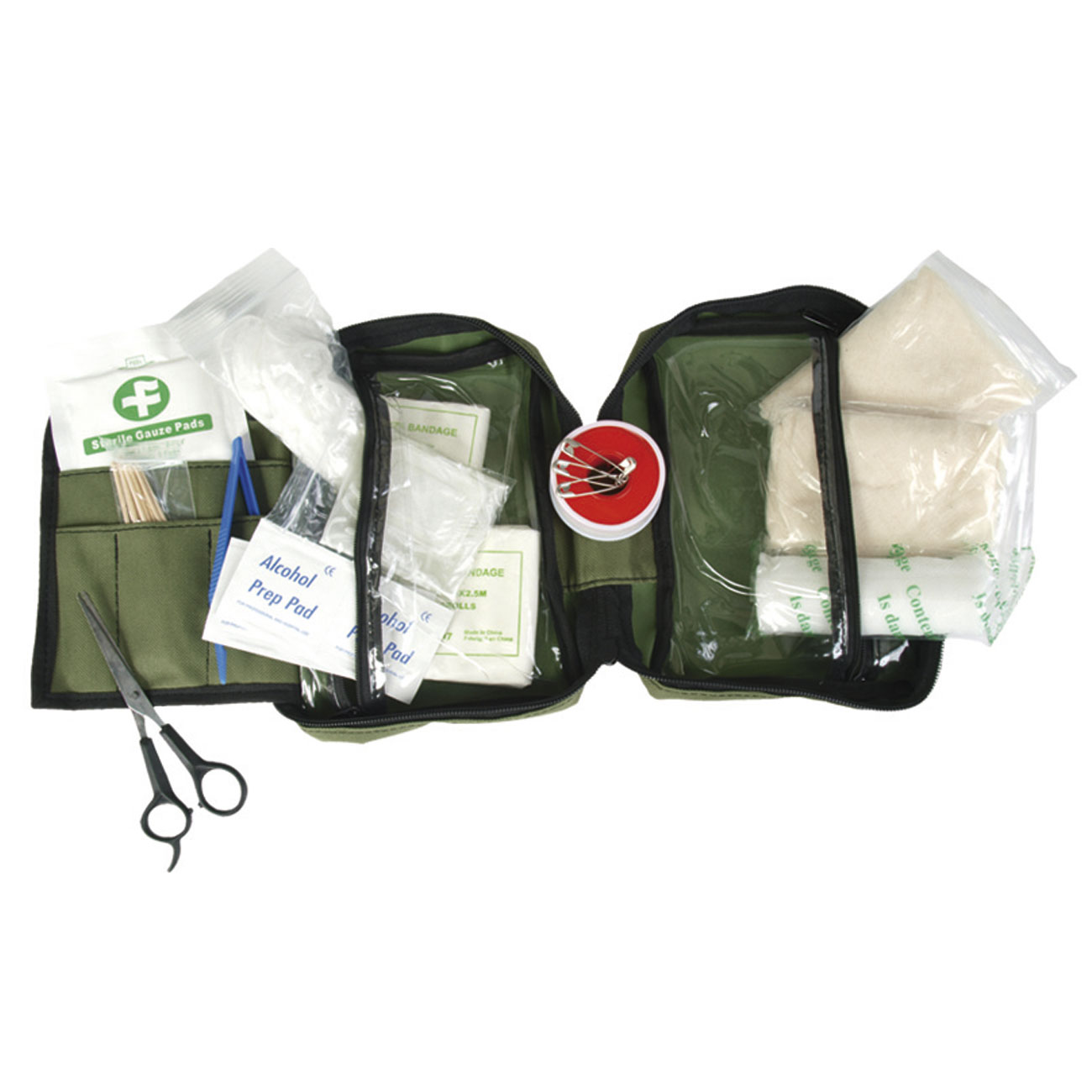 Das Mil-Tec Erste Hilfe Set kommt in einer praktischen Aufbewahrungfstasche mit Reißverschluss. Zusätzlicher Stauraum für weitere Ausrüstung durch die vielen Klapp- und Steckfächer.
