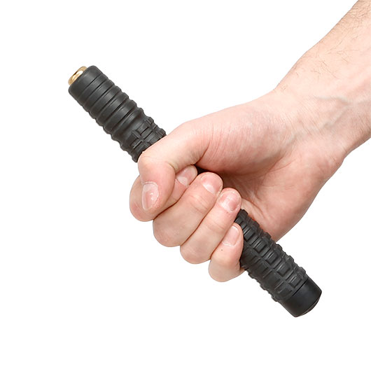 Kein Verbiegen, auch bei starken Schlägen: Der Teleskop-Abwehrstock von ESP ist aus hartem, karbitverstärktem Stahl gefertigt und besitzt einen rutschfesten, gummierten Griff.
