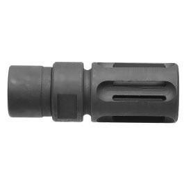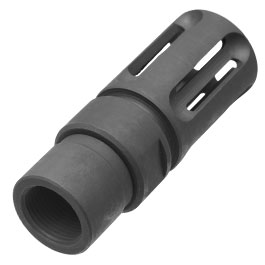 Hervorragend verarbeiteter Flash Hider aus CNC gefrästem Stahl gefertigt im Birdcage Design von Evolution Airsoft. Der Flash Hider ist präzise gefertigt und besitzt ein 14mm Linksgewinde.