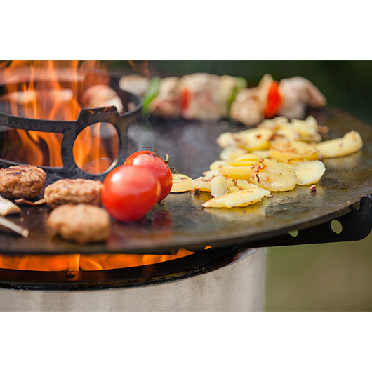 Pures Grillvergnügen - die massive Stahlplatte verwandelt den Feuerhand Pyron in eine Kochstation.