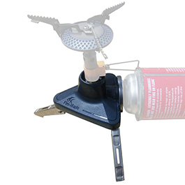 Mit dem Gasflaschenadapter WIFI von Fire Maple ist es jetzt möglich Gasflaschen mit Bajonettverschluss an einen Campingkocher mit Schraubverschluss zu verwenden. Einfach den Campingkocher auf den Adapter fest verschrauben, Standbeine ausklappen und eine Gaskartusche mit Bajonettverschluss befestigen.