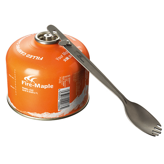 Der ultraleichte Göffel von Maple Fire kommt inkl. Kartuschenaufstecher.