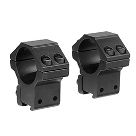 Die First Strike Montageringe aus Metall sind für alle Zielfernrohre mit einem Rohrdurchmesser von 1 Zoll (2,54 cm) geeignet. Montiert werden können Sie auf einer 11 - 14 mm Prismenschiene. Der beiliegende Montageschlüssel ermöglicht ein einfaches Verstellen der Schrauben.