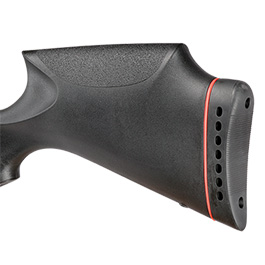 Das Luftgewehr ist mit einem ergonomisch geformten Schaft aus hochwertigem, glasfaserverstärktem Nylon ausgestattet. Durch die erhöhte Schaftbacke und die angerauten Oberflächen an Vorderschaft, Pistolengriff und Schaftbacke wird ein sicheren Halt gewährleistet.Auch unter anspruchsvollen Bedingungen behältst du somit stets die Kontrolle.