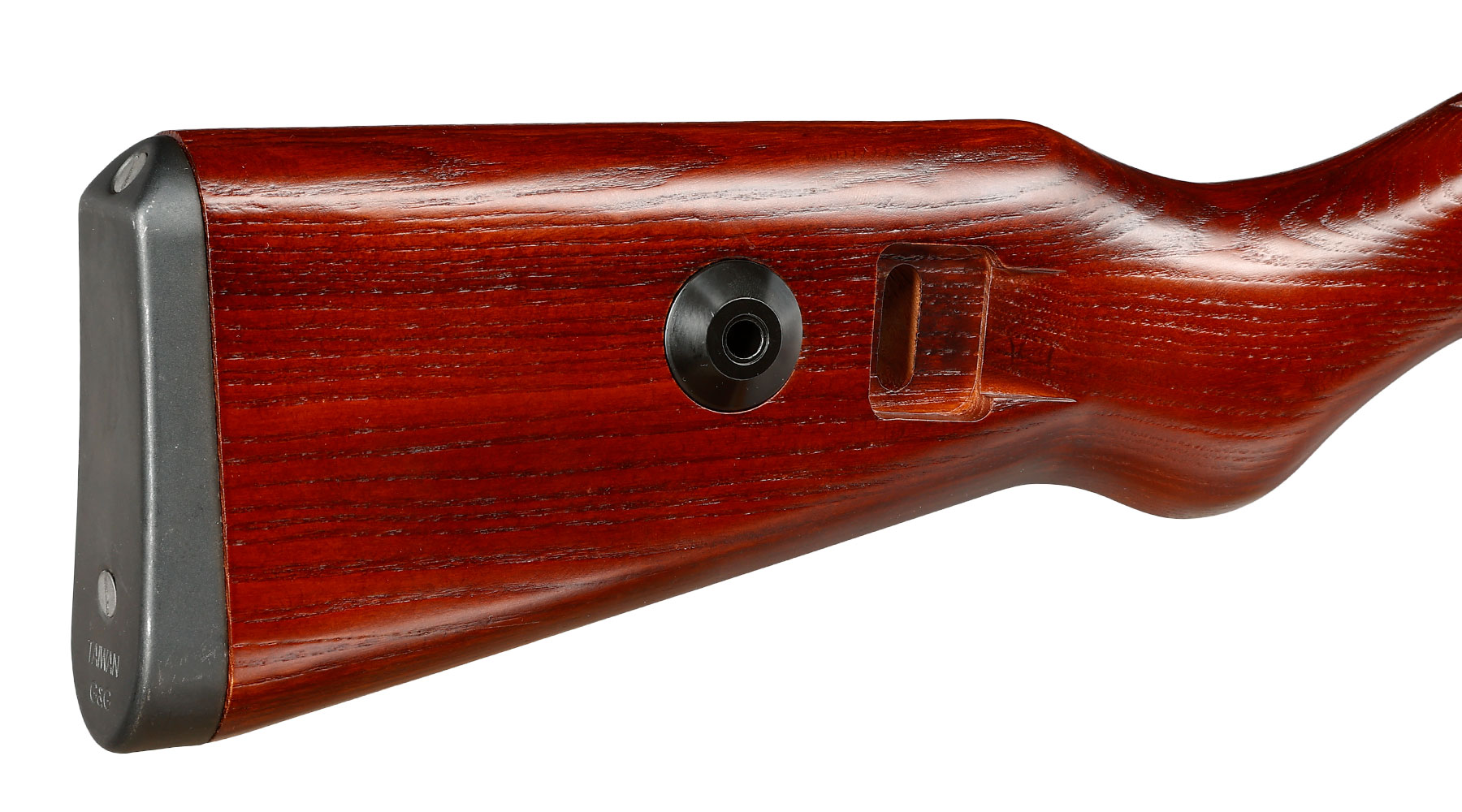 Der Nachbau von G&G Armament ist mit einem sehr schön Echtholzschaft ausgestattet, der in authentischer Färbung gestaltet ist. Alle anderen Teile sind fast ausschließlich aus stabilem Metall hergestellt wodurch der Karabiner sehr robust ist. Auch an Sammler wurde bei der Entwicklung gedacht, wodurch auch viele Original-Gravierungen angebracht sind. Neben der seitlichen Originalbezeichnung "Mod. 98" mit fixer Seriennummer befindet sich oberhalb die "bnz" Codierung für den damaligen Hersteller (Steyr-Daimler-Puch AG, Steyr). Das Herstellungsjahr ist mit "43" angegeben. Alle Originalmarkierungen sind sauber eingraviert und nicht eingelasert.