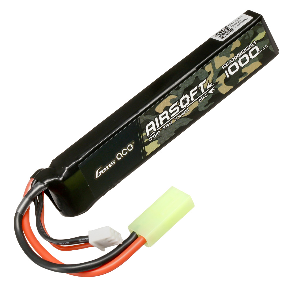 In der Akku-Serie enthalten sind viele unterschiedliche gängige Akkuformen, die jeweils in einer 7,4 Volt sowie 11,1 Volt Variante erhältlich sind. Auch gibt es jeden Akku entweder mit einem T-Stecker oder dem herkömmlichen Mini-Tam Stecker. Dank dieser Eigenschaften kann eigentlich für fast jedes Airsoftgewehr der passende Gens Ace Antriebsakku gefunden werden. Dank der hohen Leistungsdichte sind sämtliche Akkutypen sehr leistungsstark und besitzen eine konstante, sehr hohe Entladung von kontinuierlich 25C. Die kurzfristige Spitzenentladung ist natürlich ein ganzes Stück höher, wodurch auch leistungshungrige Antriebsmotoren genug Stromstärke geliefert bekommen.