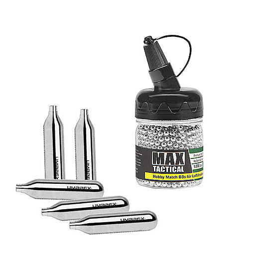 inkl. 5 x CO2 Kapseln + 1000er Max Tactical Stahl-BBs