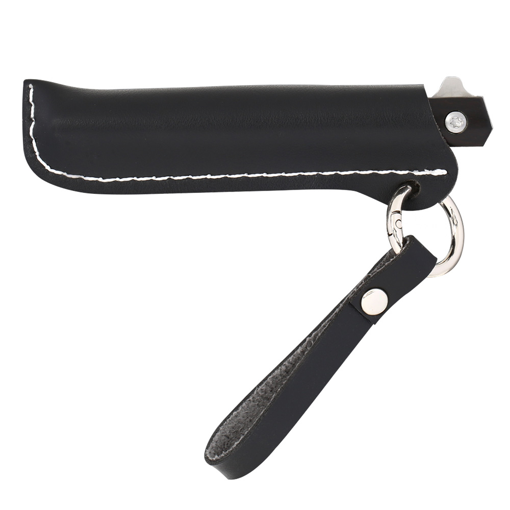 Die Griffschalen aus Ebenholz sind schön verarbeitet und passen gut zu dem klassischen Design. Das Haller Einhandmesser Slim wird in einem schwarzem Lederetui mit Anhänger geliefert.