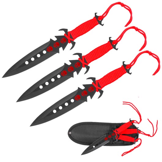 - 3 x Haller Wurfmesser Red Skull schwarz/rot