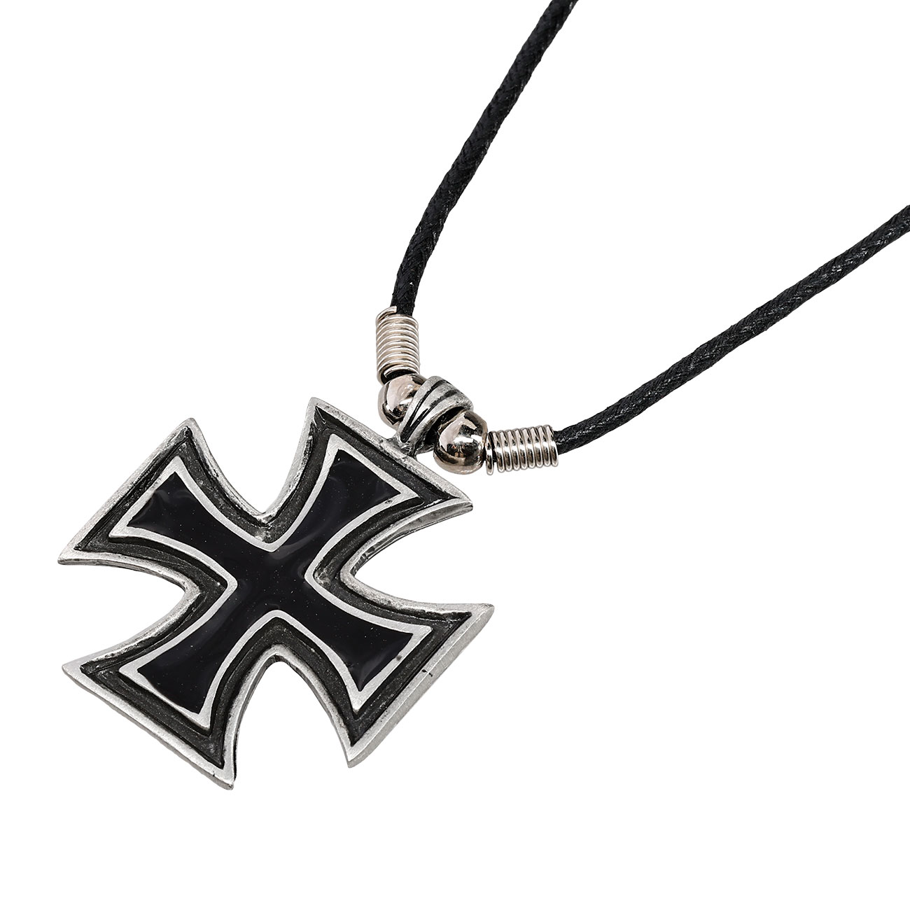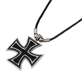 Diese schön gearbeitete Halskette ist ca. 60 cm lang und kommt mit einem 3,5 x 3,5 cm großen Kreuzanhänger in schwarz.