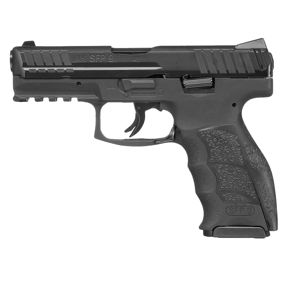 In Design und Handling ist die Heckler & Koch SFP9 RAM Pistole kaum von der scharfen Originalpistole zu unterscheiden. Ein beideitig bedienbarer Paddle-Magazinauslöser, die Abzugszüngelsicherung und eine Picatinny-Schiene für optionales Zubehör gehören zur Ausstattung der H&K SFP9 Pistole. Selbstverständlich befinden sich auf dem mattschwarzen Schlitten aus Aluminium die Original Heckler & Koch Markings.