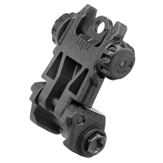 Das aus Polymer-Verbundkunststoff hergestellte Flip-Up Sight von ICS Airsoft kommt im modernen CFS-Design. Das hintere Zielvisier kann wahlweise aus- oder eingeklappt werden. Ein ungewolltes aus- oder einklappen verhindert dabei der integrierte federgelagerte Schnapp-Mechanismus.Weiterhin kann das Zielvisier seitlich verstellt werden und besitzt zwei wählbare Absehen.