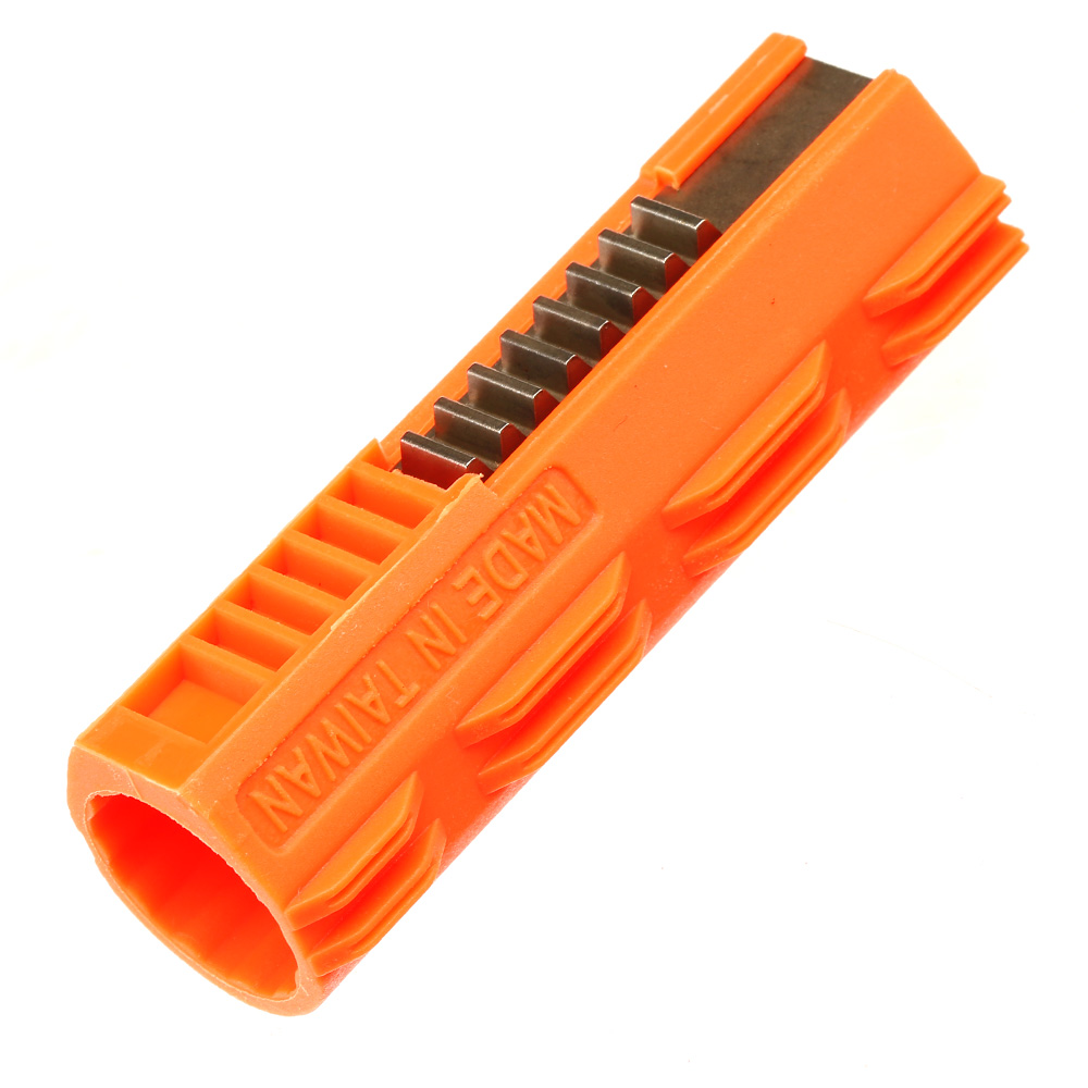 Mit dem Reinforced Upgrade POM Piston von ICS Airsoft werden die drei oben genannten positiven Eigenschaft in einem Produkt vereint. Der Piston in dieser Ausführung ist das perfekte Upgrade für alle ICS Airsoftgewehre, die mit keiner elektrischen Blow-Back Funktion ausgestattet sind. Durch das spezielle und sehr zähe POM-Material ist der Piston sehr stabil. Zusätzlich sorgt die aus gehärtetem Stahl gefertigte Zahnreihe mit 8 Zähnen für maximale Stabilität. Um die Reibung zu verringern läuft der Piston auf sogenannte Thin-Lines. Diese sorgen weiterhin für eine bessere Schmierung innerhalb der Gearbox. Mit einem Gewicht von nur 16 g ist der Piston auch sehr leicht.