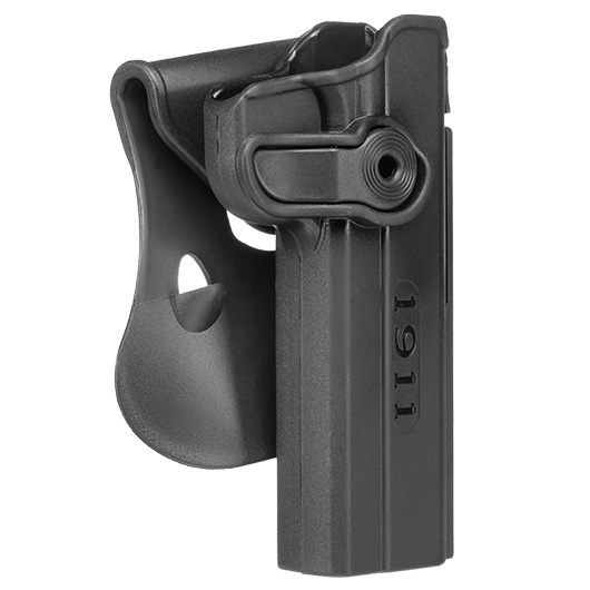 Das Level 2 Holster von IMI Defense ist aus einem Kunststoff-Polymer gefertigt wodurch es sehr leicht, aber ebenso robust ist. Durch die direkt angebrachte Paddle Plattform kann das Holster leicht am Gürtel getragen werden. Durch die Passform kann die Waffe zudem nur in eine Richtung entnommen werden und somit ist der unbemerkte Zugriff durch Dritte (Diebstahl, Verlust) stark vermindert.