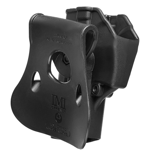 Das Level 2 Holster von IMI Defense ist aus einem Kunststoff-Polymer gefertigt wodurch es sehr leicht, aber ebenso robust ist. Durch die direkt angebrachte Paddle Plattform kann das Holster leicht am Gürtel getragen werden. Durch die Passform kann die Waffe zudem nur in eine Richtung entnommen werden und somit ist der unbemerkte Zugriff durch Dritte (Diebstahl, Verlust) stark vermindert.