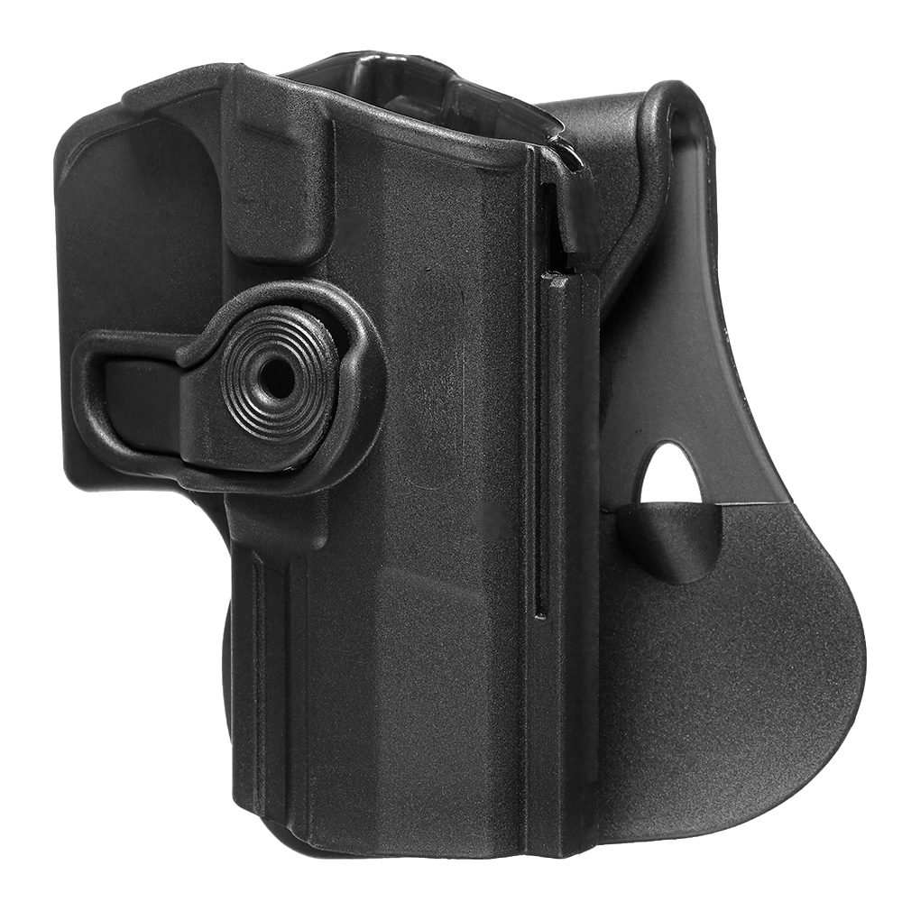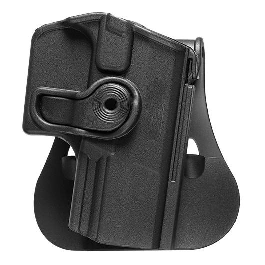 Das Level 2 Holster von IMI Defense ist aus einem Kunststoff-Polymer gefertigt wodurch es sehr leicht, aber ebenso robust ist. Durch die direkt angebrachte Paddle Plattform kann das Holster leicht am Gürtel getragen werden. Durch die Passform kann die Waffe zudem nur in eine Richtung entnommen werden und somit ist der unbemerkte Zugriff durch Dritte (Diebstahl, Verlust) stark vermindert.