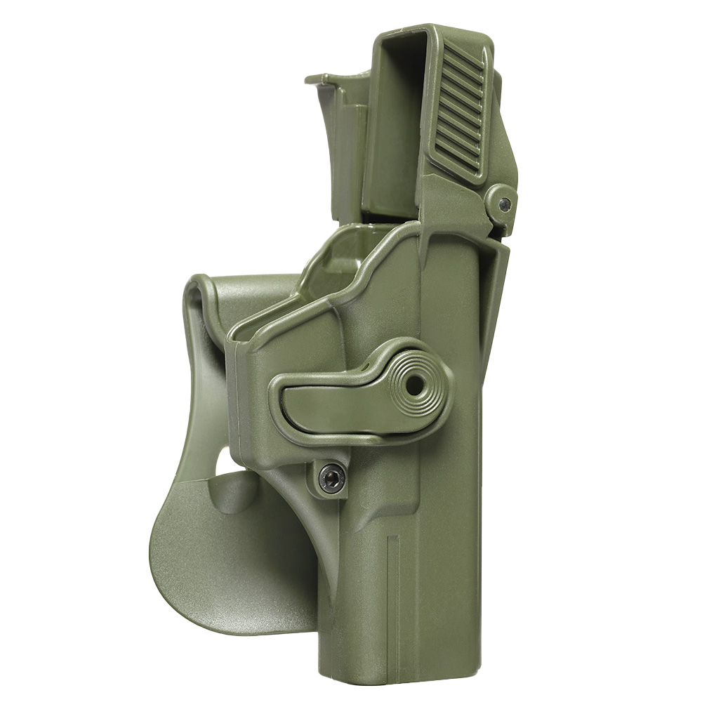Das Level 3 Holster von IMI Defense ist aus einem Kunststoff-Polymer gefertigt, wodurch es sehr leicht, aber ebenso robust ist. Durch die direkt angebrachte Paddle Plattform kann das Holster leicht am Gürtel getragen werden. Durch die Passform kann die Waffe zudem nur in eine Richtung entnommen werden und somit ist der unbemerkte Zugriff durch Dritte (Diebstahl, Verlust) stark vermindert.