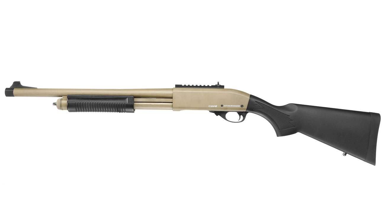 - Jag Arms Scattergun HD Vollmetall Pump Action Gas Shotgun 6mm BB tan / schwarz