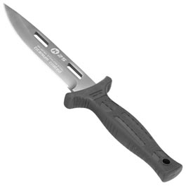 Das Griffstück des Tactical besitzt eine griffige Struktur und liegt in jeder Situation absolut rutschfest in der Hand. Eine Öse am Griffende bietet die Möglichkeit, einen zusätzlichen Fangriemen zu befestigen.