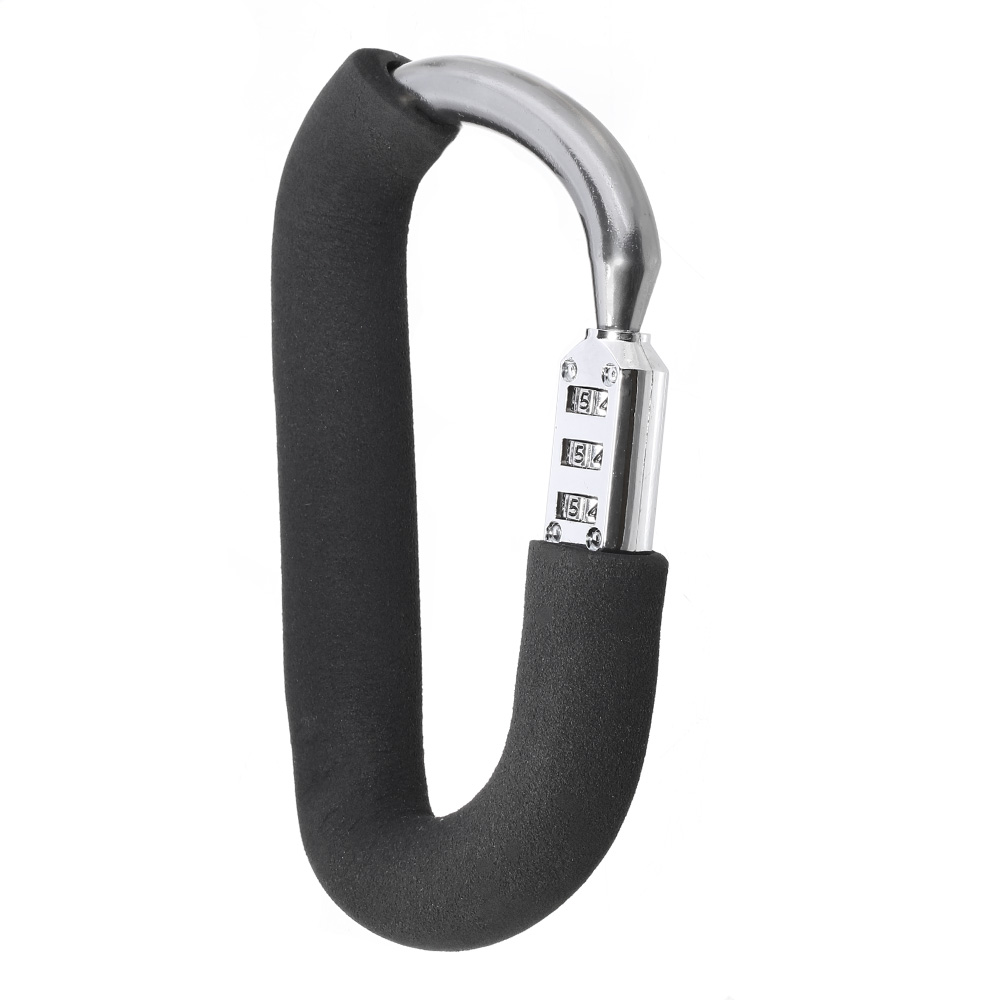 Gummierte Karabiner mit einem 3-stelligem Zahlencode. Die Zahlenkombination ist dabei frei wählbar.