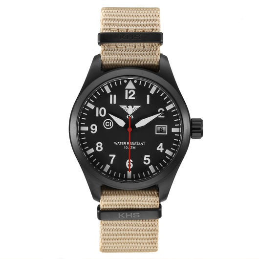 - KHS Armbanduhr Airleader Black Steel C1 mit Natoarmband beige