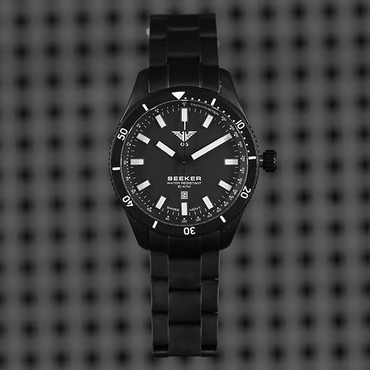 Aus hochwertigem Edelstahl gefertigt, bietet die Seeker Steel ein stabiles und robustes Gehäuse und ein Glas aus kratzfestem Saphirglas. Das matt-blaue Ziffernblatt ist mit einem Datumsfenster auf 6-Uhr Position versehen. Der Sekundenzeiger kann mithilfe der C1-Leuchtfarbe auch in der Dunkelheit für taktische sekundengenaue Einsätze verwendet werden. Ein Sekundenstopp kann mittels gezogener Krone vorgenommen werden. Dazu verfügt die Armbanduhr über eine Datumschnellschaltung. Die KHS Seeker Steel läuft mit einem hochwertigen Schweizer Quarzuhrwerk und besitzt eine Wasserdichtigkeit von 10 Bar.