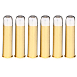 Die Hülsen bzw. Bullet Shells werden von King Arms komplett aus Metall im CNC-Herstellungsverfahren passgenau gefertigt. Diese Hülsen sind passend bei folgenden King Arms Revolvermodelle im Kaliber 6mm BB: