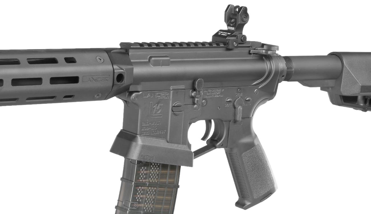 Die L15 Defense Gewehrserie von Lancer Systems unterscheidet sich von Standard AR15 Gewehren aufgrund der verbesserten Komponenten. Vor allem der Handguard im Lancer LCH7 Design, der je nach Ausführung des Gewehrs in Aluminium oder echtem Carbonfiber gefertigt ist, ist eine echte Augenweide. Weiterhin gehört natürlich auch der Lancer Adaptive Magwell zum Lieferumfang, wodurch Magazin-Reloads einfach und schnell durchgeführt werden können. Dank der genannten Eigenschaften bietet die L15 Gewehrserie auch in der Airsoftversion eine erstklassige Ergonomie und Kontrolle.