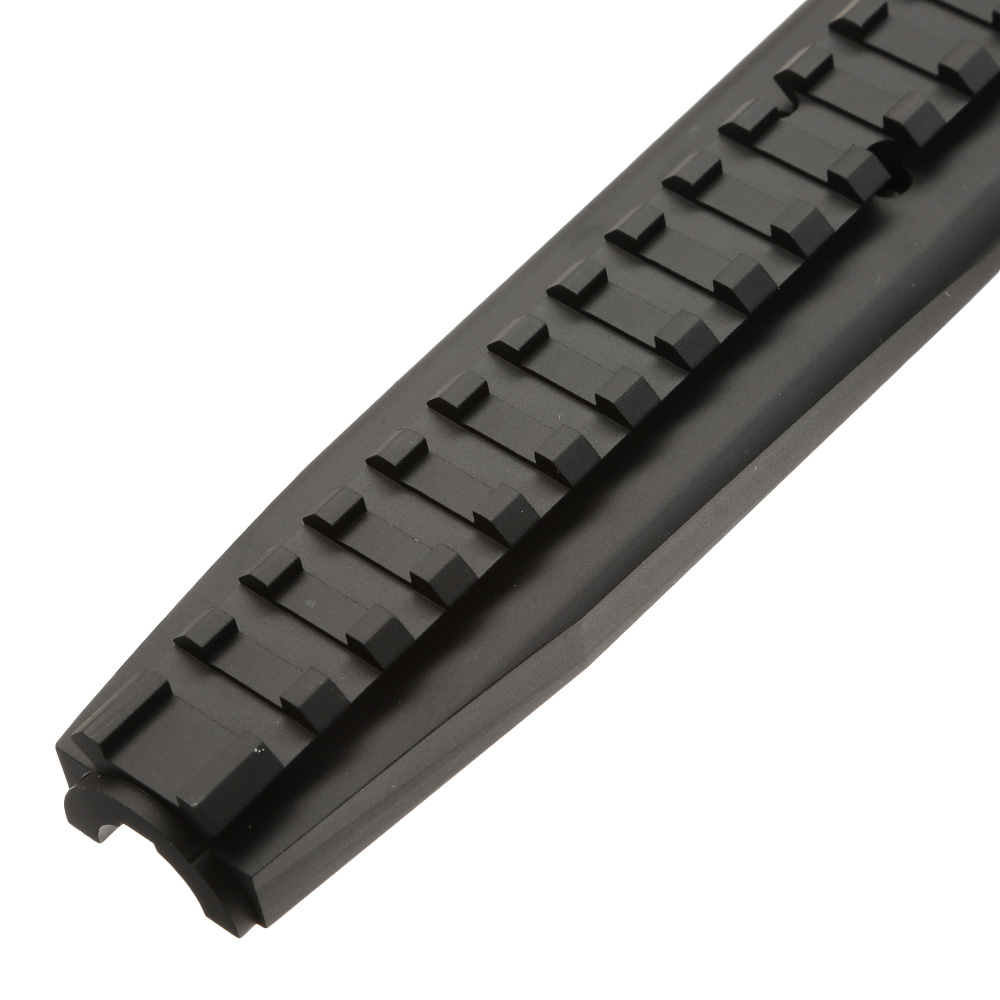 Die sogenannte Forward Optic Mount ist eine 21 mm Zielgerätschiene, die beim King Arms M1 Carbine mit CO2- bzw. Gas-Blow-Back Schusssystem anstatt der oberen Holzabdeckung montiert werden kann. Dank CNC-Herstellungsverfahren ist die Schiene bzw. Abdeckung besonders passgenau gefertigt und lässt sich einfach montieren. Auf der vorhandenen Schiene im gängigen 21mm Format mit einer Länge von ca. 207 mm kann ein Zielgerät perfekt positioniert werden.