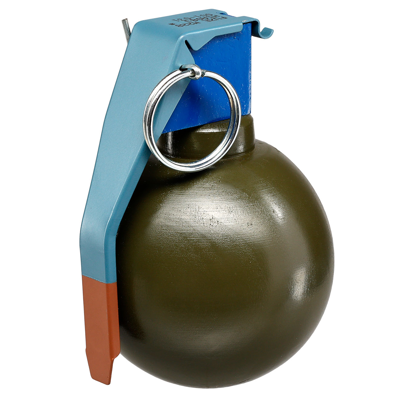Die im Maßstab 1/1 originalgetreu nachgebildete M67 Deko-Handgranate ist aus Holz gefertigt. Der obere Bügel ist aus Stahlblech gefertigt. Geeignet z.B. für Sammler, Reenactor oder Filmgesellschaften.
