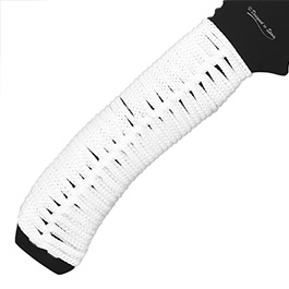 Das Griffstück liegt dank der ergonomischen Form und der weißen Nylonschnur gut in der Hand. Im Lieferumfang befindet sich eine praktische Nylonscheide mit Gürtelschlaufen, die über Reißverschluss geöffnet werden kann.