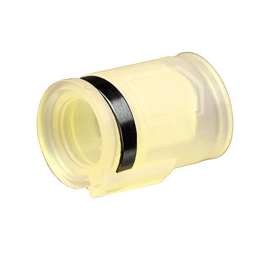 In dieser Ausführung handelt es sich um die Silikon-Variante des Hop-Up Gummis. Dies ist erkennbar an dem leicht durchscheinenden Material. Das Material verbessert vor allem bei kälteren Temperaturen die Performance. Das Hop-Up Gummi besitzt auch nicht mehr den sogenannten Cold-Bore Shot Effect, wodurch auch Einzelschussgewehre beim ersten Schuss schon die maximale Performance erhalten.