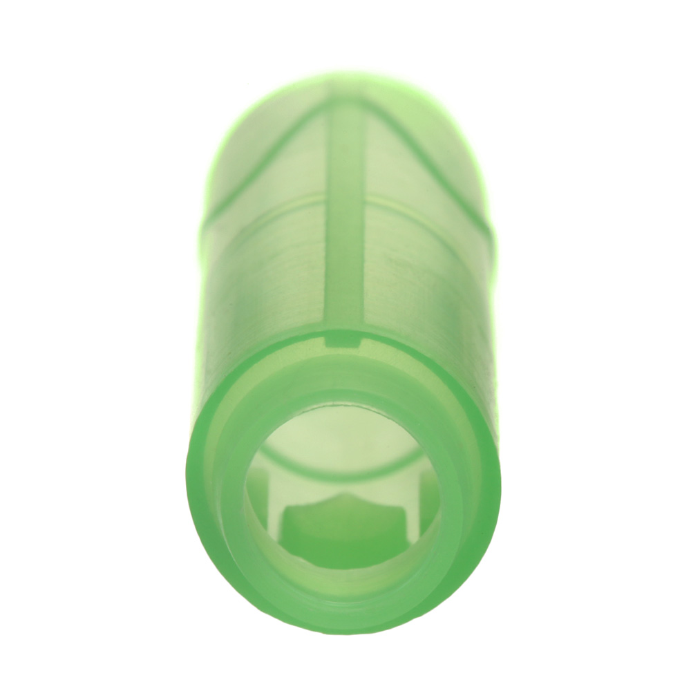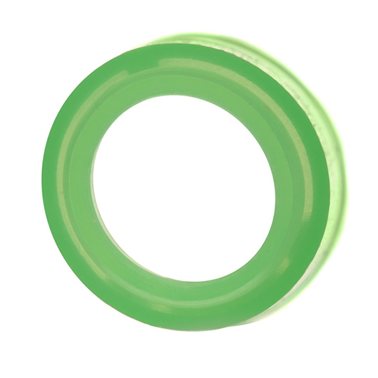 Die Patchfläche des Hop-Up Gummis ist in einer flachen Delta Formgebung ausgearbeitet, die links und rechts mit sogenannten Führungslippen ausgestattet ist. Wird der Einbau korrekt durchgeführt, sorgen die Führungen dafür, dass sich das Patch-Dreieck genau mittig in der Lauföffnung befindet. Gleichzeitig wird die Kugel dank der Führungslippen präzise geführt. Gegenüber einem Standard Hop-Up Gummi sorgt das Flathop-Design des Super Silicone Buckings von Maple Leaf für eine gesteigerte Reichweite und gleichzeitig besserer Präzision. Das Hop-Up Bucking ist mit einer sehr engen Dichtlippe im vorderen Bereich ausgestattet, die sehr gut am Nozzle bzw. Cylinder-Head abdichtet. Dank der unterschiedlichen Farben, kann der passende Hop-Up Gummi auch in der Werkzeugkiste sofort erkannt werden.