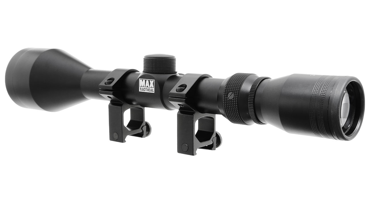 Ein feinmechanisches Präzisionszielfernrohr von Max Tactical. Das Zielfernrohr verfügt über eine 3-9fache stufenlose Zoomfunktion. Das Max Tactical 3-9x50 wurde mit beschichteten Linsen ausgestattet und besitzt ein großes Sehfeld. Es ist stoßfest und spritzwassergeschützt.