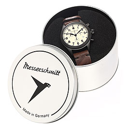 Neben der Messerschmitt ME5030-44VB erhalten Sie zur Aufbewahrung oder für den Transport eine hochwertige Uhrendose aus Aluminium.