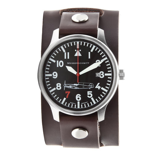 Details zu Messerschmitt Fliegeruhr 109-42R7 "Rote 7" mit breitem Lederarmband: