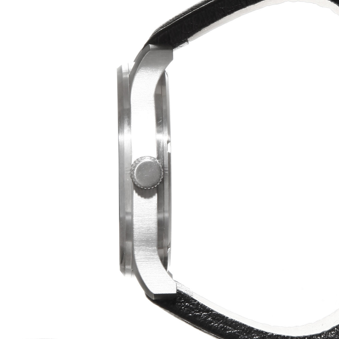 Auf dem Zifferblatt dieser Hommage an Hans-Joachim Marseille ist die Seitenansicht einer Messerschmitt Bf 109F-4/Trop zu sehen - jenes Jagdflugzeug, das der Luftwaffe-Pilot während all seiner Einsätze flog. Für Luftfahrt-Experten gilt die ME 109 heute als eines der Meisterwerke des Flugzeug-Konstrukteurs Willy Messerschmitt. Die Datumsanzeige wurde bei 3 Uhr elegant ins Ziffernblatt integriert. Das hochwertige Echtlederarmband, schwarz meliert und weiß abgenäht, garantiert einen angenehmen und sicheren Tragekomfort.