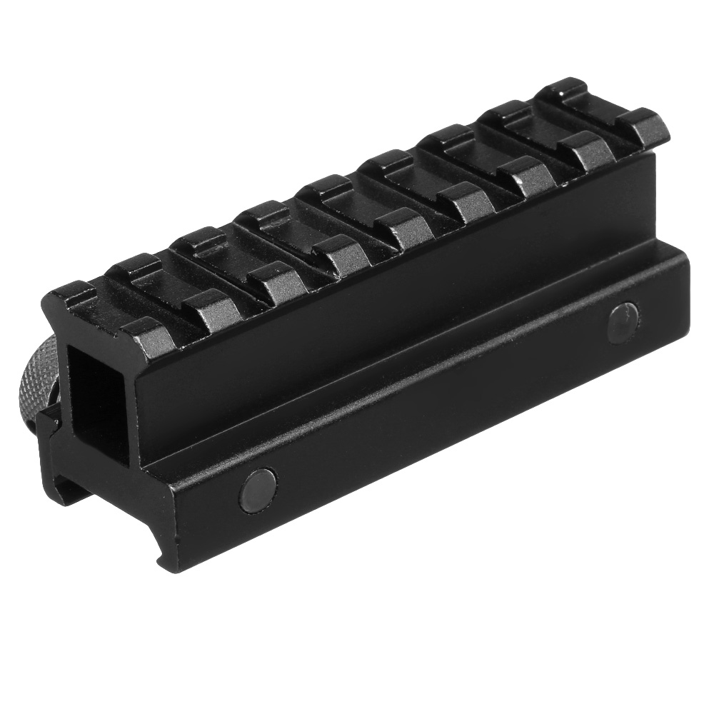 Diese Zielgeräterhöhungsschiene von MET ist mit einer festen Erhöhung von ca. 25 mm ausgestattet. Das Zielgerät wird dadurch um 25 mm gegenüber der untenliegenden Schiene angehoben. Der Scope Riser ist universell passend an alle 20 - 22mm Schienen. Es handelt sich um eine Zwischenschiene, die zwischen dem Zielgerät und der Montageschiene montiert wird.