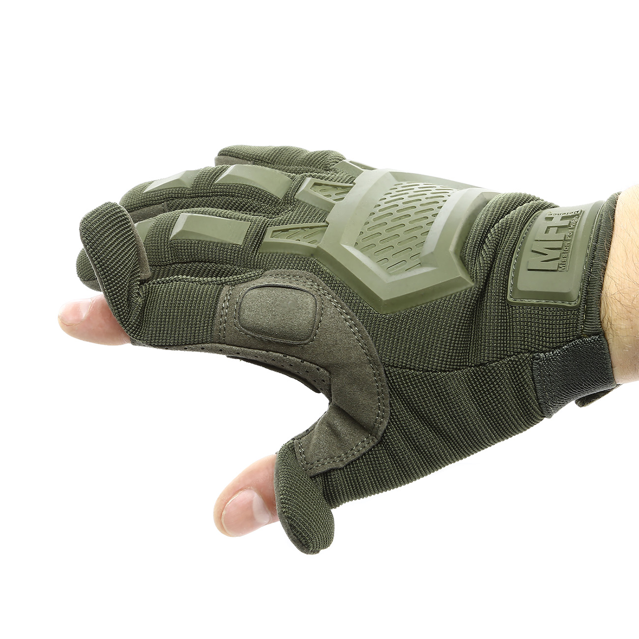 Für den nötigen Schutz sorgen zum einen die weichen Kunststoffeinlagen im Knöchelbereich sowie auf der Außenhand. Zum anderen wurde die Innenhand des Handschuhs Action von MFH verstärkt sowie mit einer Teilpolsterung versehen.