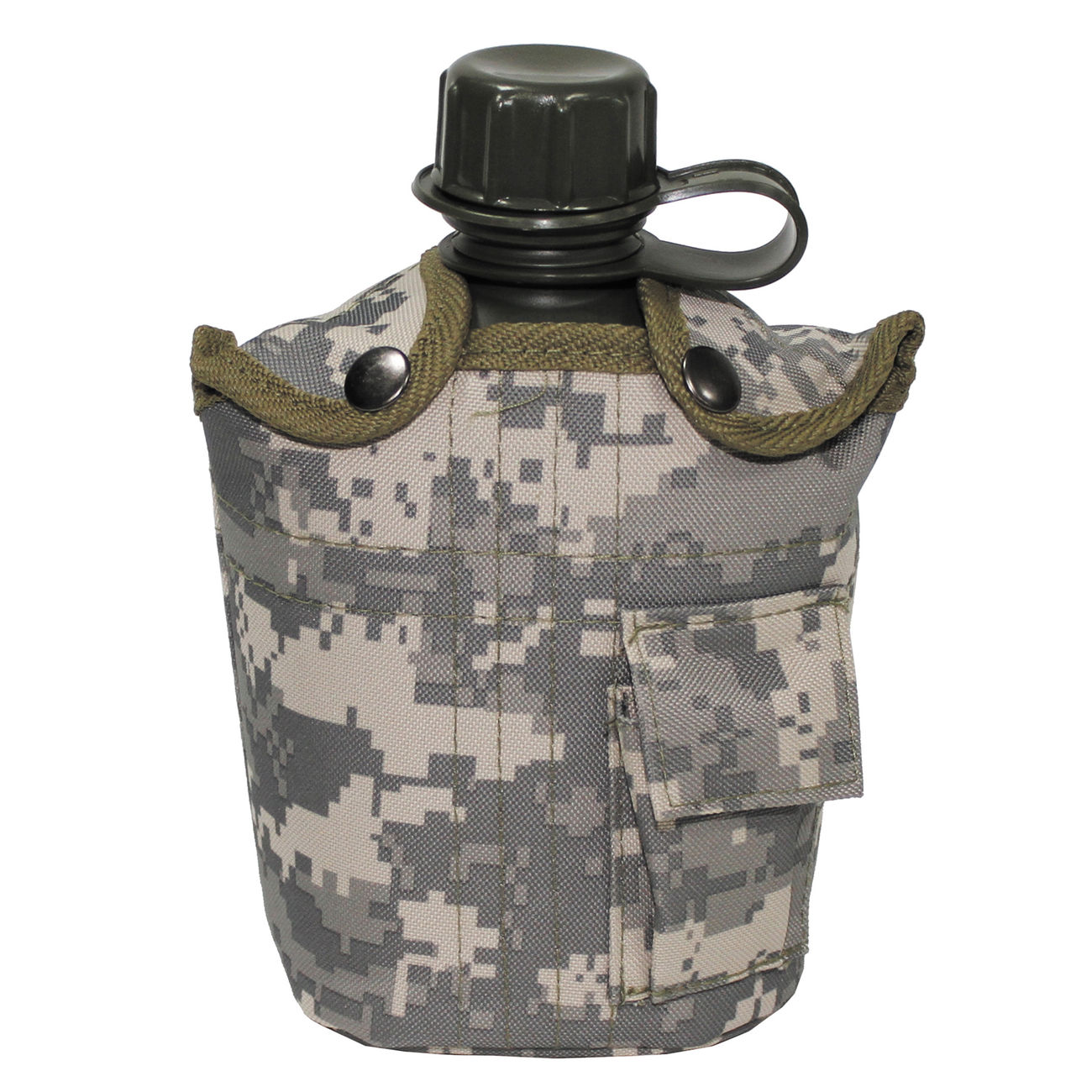 MFH US Plastikfeldflasche 1L mit Bezug AT-digtal besitzt ein Fassungsvermögen von 1 Liter. Der Bezug ist gefüttert, mit 2 Druckknöpfen und einer kleinen Tasche. Mit den 2 Halteklammern können Sie diese Feldflasche am Gürtel, Koppel oder Rucksack befestigen.