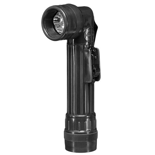 Handliche Winkelstablampe mit 4 hellen LEDs. Robustes ABS-Kunststoffgehäuse mit Schalter mit Morsefunktion. Metallclip zur Befestigung am Gürtel.