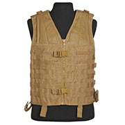 Netztaschen vorne und hinten ermöglichen das Einschieben einer leichten Platte. Diese Weste kommt nicht nur mit einem Molle-System vorne, am Rücken und seitlich, sondern auch mit leicht einstellbaren Kompressionsriemen je 3 an den Seiten und 2-mal vorne. Verstellen lässt sich der Plate Carrier auch über die mit Klett befestigten Schultergurte. Abgerundet wird das Modell durch die zusätzlichen Klettflächen vorne auf der Brust zum Anbringen von Patches oder Abzeichen.