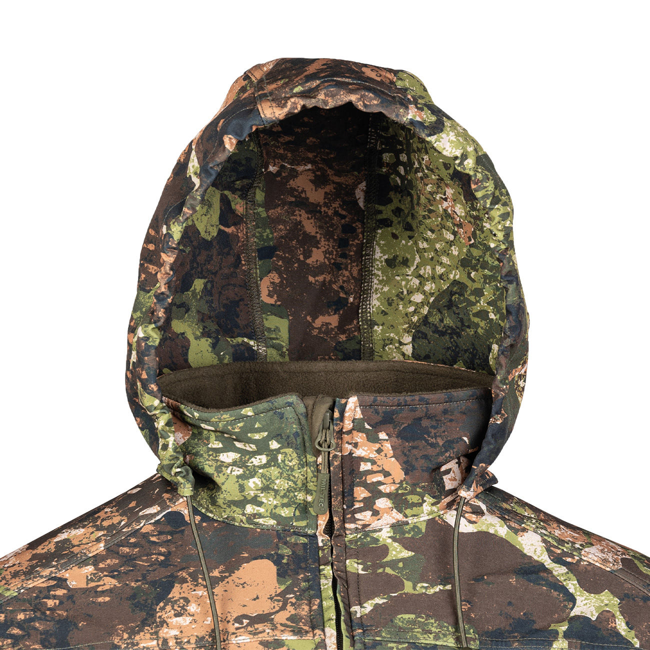 Die SCU 14 Softshelljacke von Mil-Tec kommt im Phantomleaf Camo. Sie besteht aus einer dreilagigen Polyesterschicht mit glatter Oberfläche und ist gut geeignet für kühlere Herbsttage oder frühe Wintertage. Die Ärmel sind per Klettverschluss verstellbar, am Saum und Kragen befinden sich Kordelzüge. Für gute Luftzirkulation sorgen Belüftungsschlitze unter den Armen. Der Ellbogenbereich ist verstärkt.