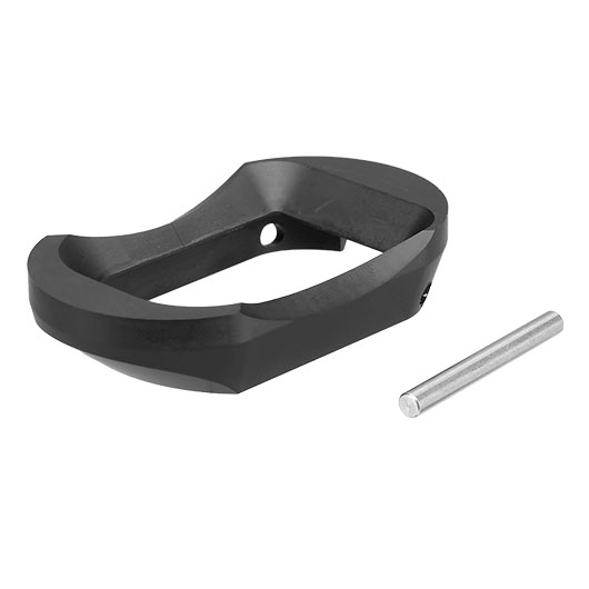 Der Enlarged Magwell wird von Modify-Tech im passgenauen CNC-Verfahren aus Aluminium hergestellt und im Anschluss schwarz eloxiert. Die Montage am Rahmen der Pistole erfolgt einfach und schnell durch den enthaltenen Bolzen. Das Design des Magwells erinnert von unten an einen Trichter und sorgt dadurch für einen schnelleren und einfacheren Magazinwechsel. Der Magwell kann weiterhin auch als Handballen-Auflage genutzt werden, um mit der Pistole präziser Schießen zu können.